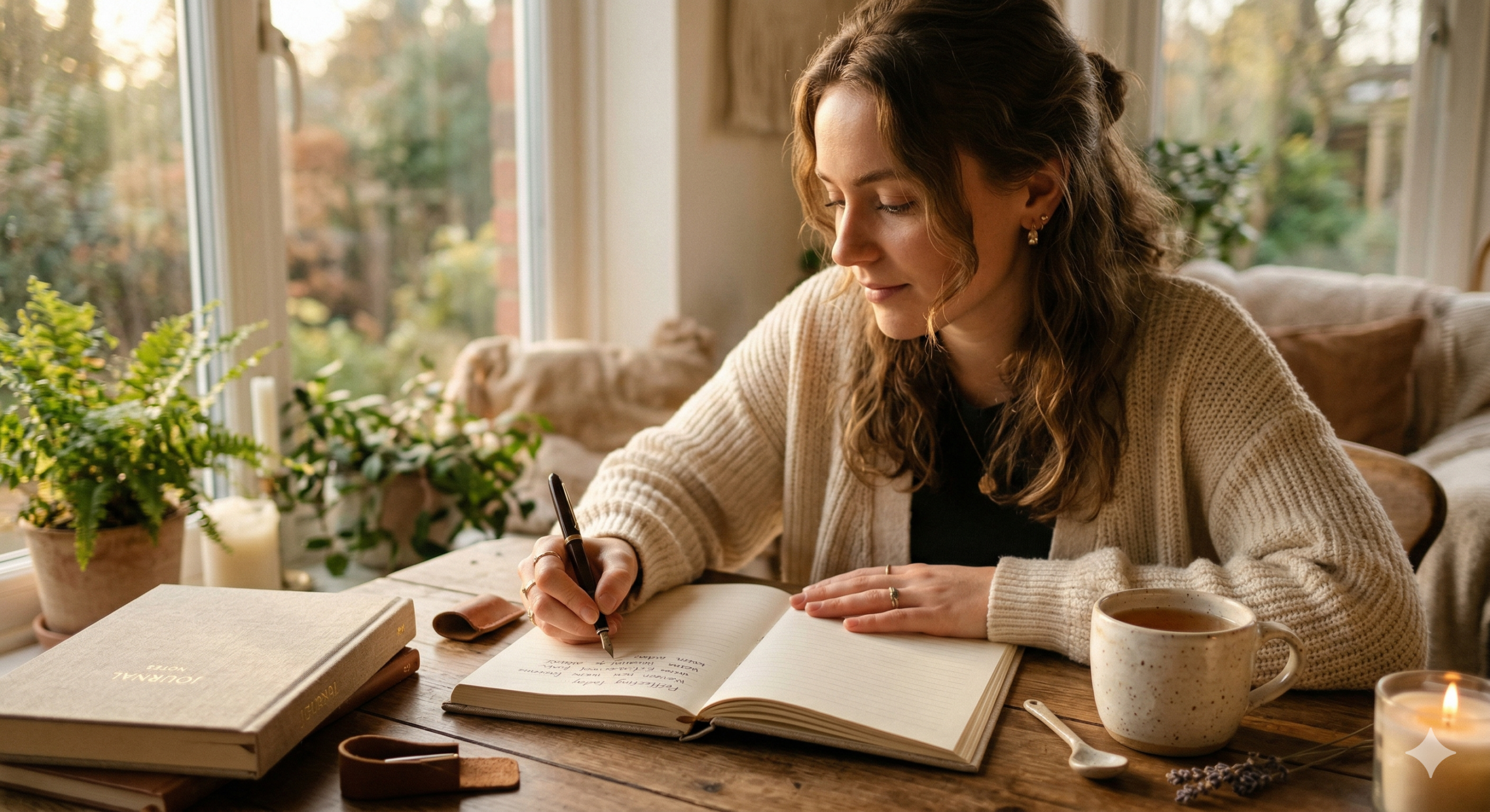 A ansiedade se alimenta da incerteza e do foco excessivo no futuro. O journaling terapêutico atua como uma âncora poderosa que puxa a sua consciência de volta para o momento presente. Ao sentar-se com um caderno e uma caneta, você sinaliza para o seu sistema nervoso que está segura, que o ambiente ao redor é estável e que você tem o controle sobre a narrativa da sua própria vida naquele exato segundo.
